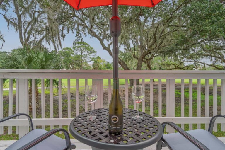 Welcome to Fairway Shores, a cozy 1-bedroom, 1-bath condo nestled in the 24-hour gated Ocean Ridge community at Edisto Beach, SC. Located just 8 steps up on the first floor, our stylish retreat offers stunning views of the lush golf course — the perfect backdrop for your morning coffee under the bright orange umbrella as you take in the peaceful sounds of nature.